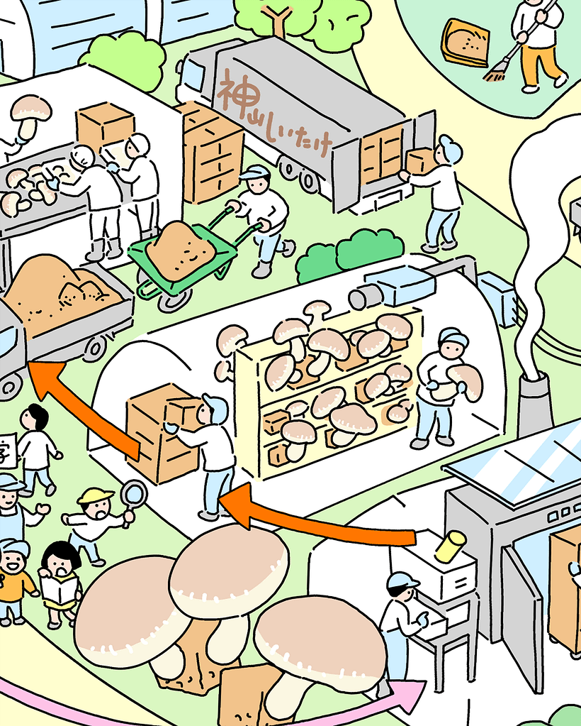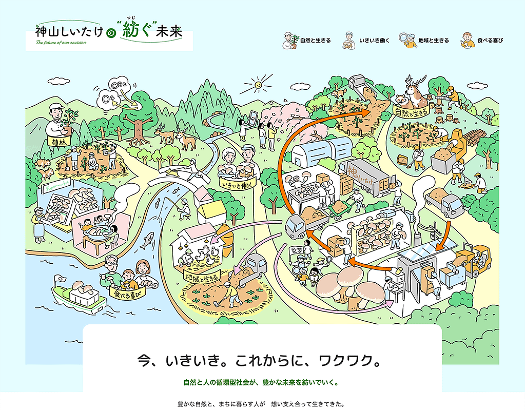 WEBサイトのメインビジュアルをデザインしました。お客様の要望を踏まえ、テーマである「自然と人の循環型社会」を手描きタッチで表現しました。